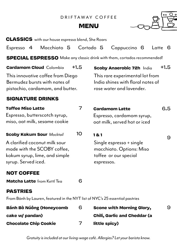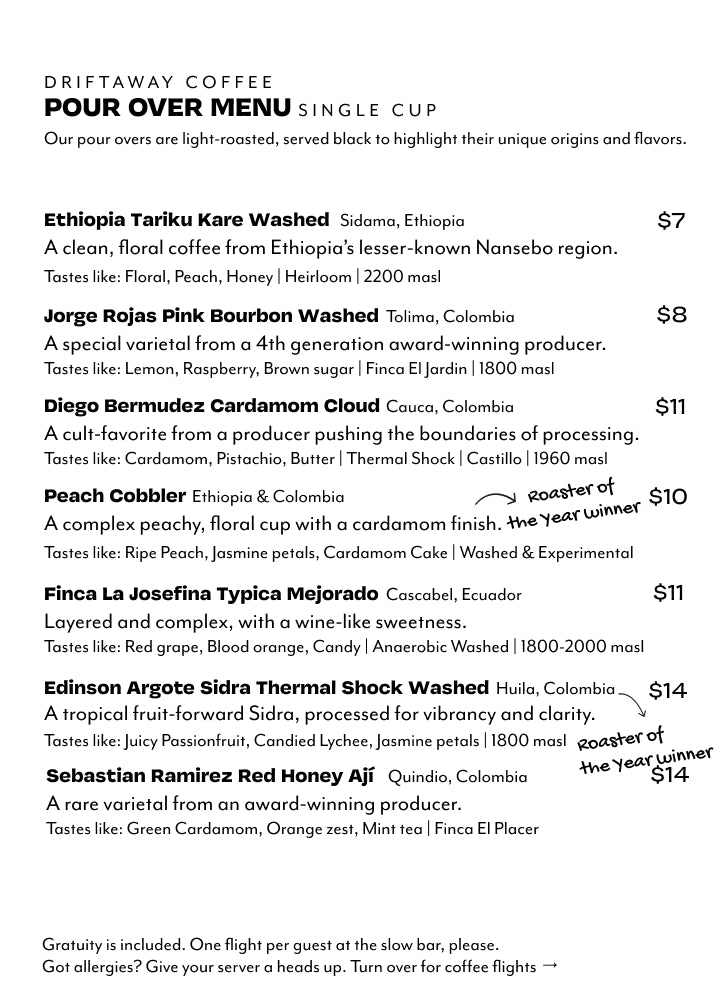 WELCOME TO THE DRIFTAWAY COFFEE SHOP & POUR OVER BAR